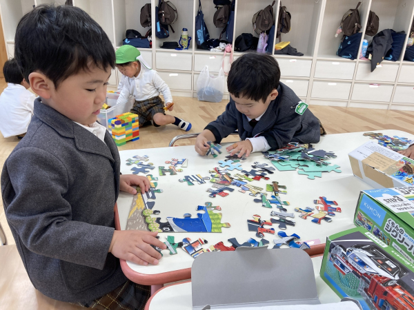 パズルでは協力して完成を目指す様子も見られましたよ。