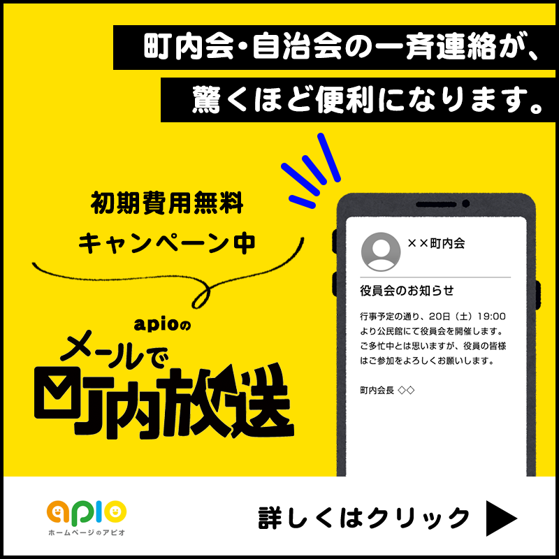 apioの「メールで町内放送」は、導入や操作がとにかく簡単!