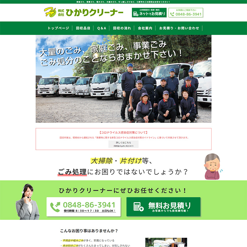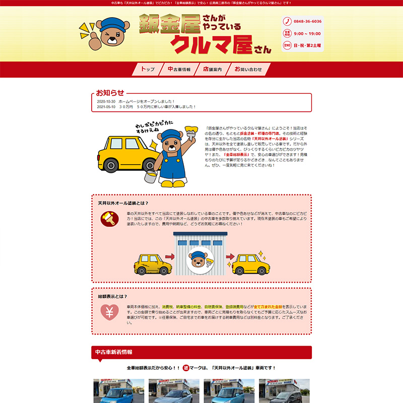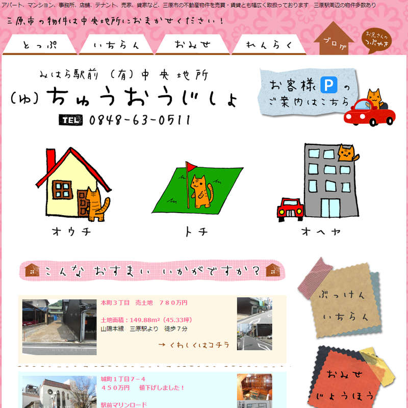 | 連絡先 | 携帯電話:090-5265-3412 固定電話:0848-67-3960 (携帯電話優先でお掛けください) FAX:050-3383-4647 |